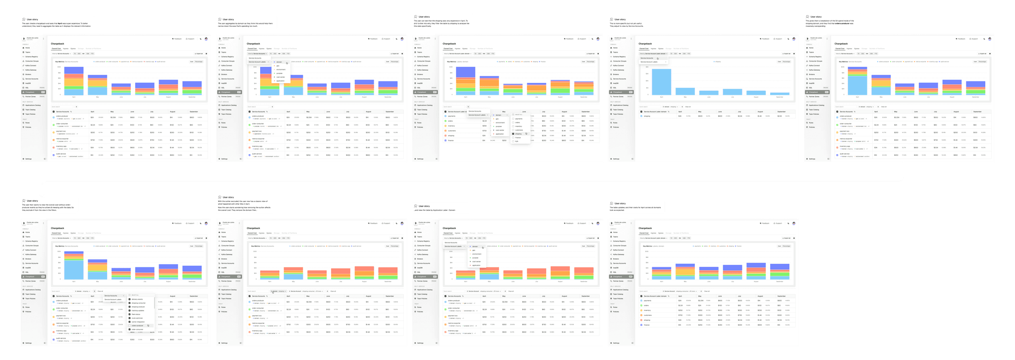 We used user stories to help us understand the flows, and how users might want to explore Chargeback.