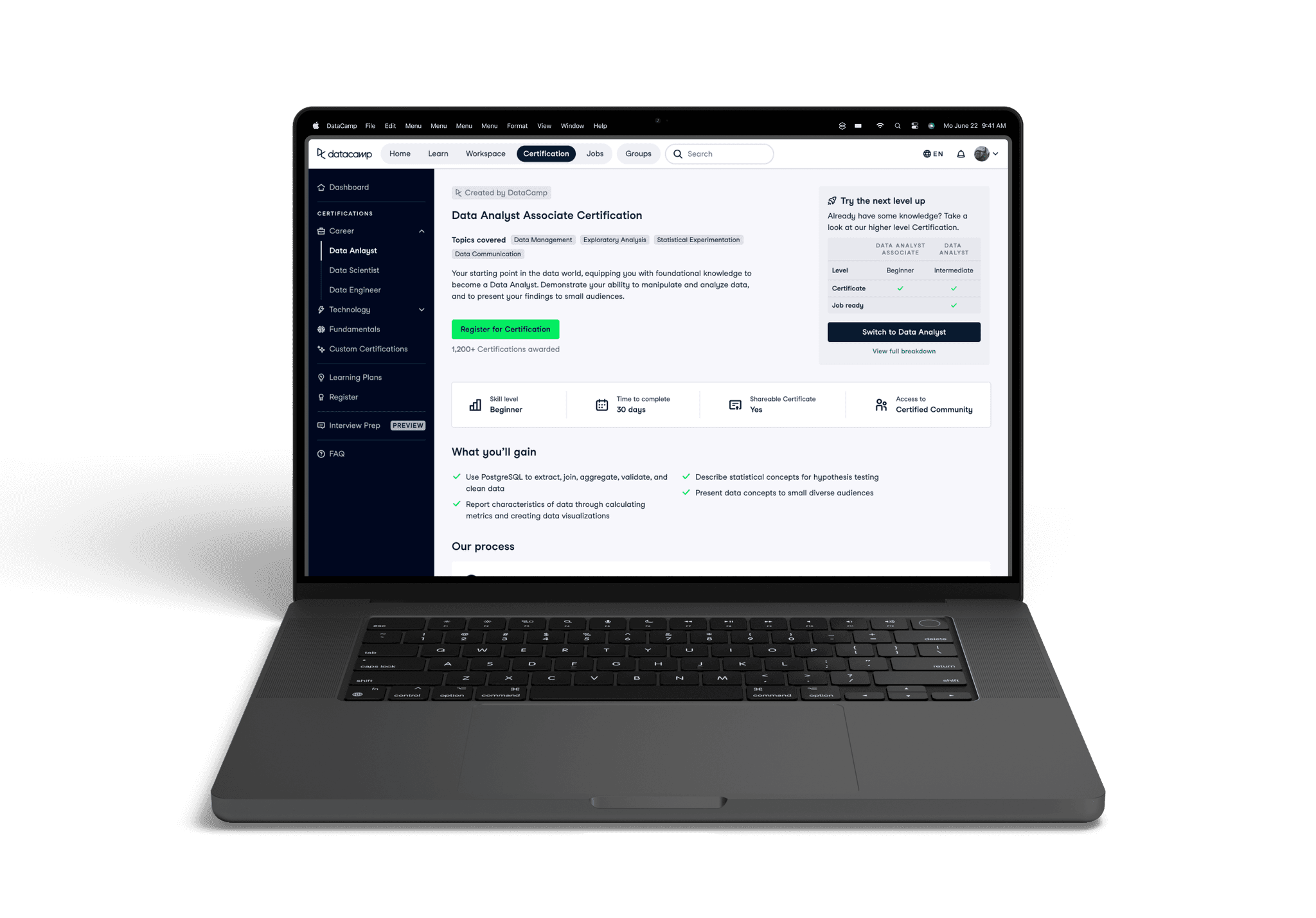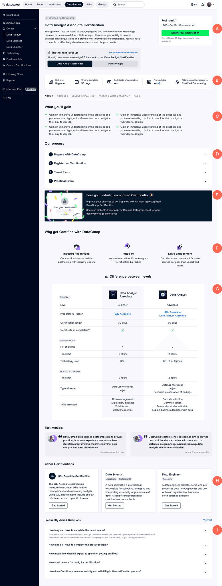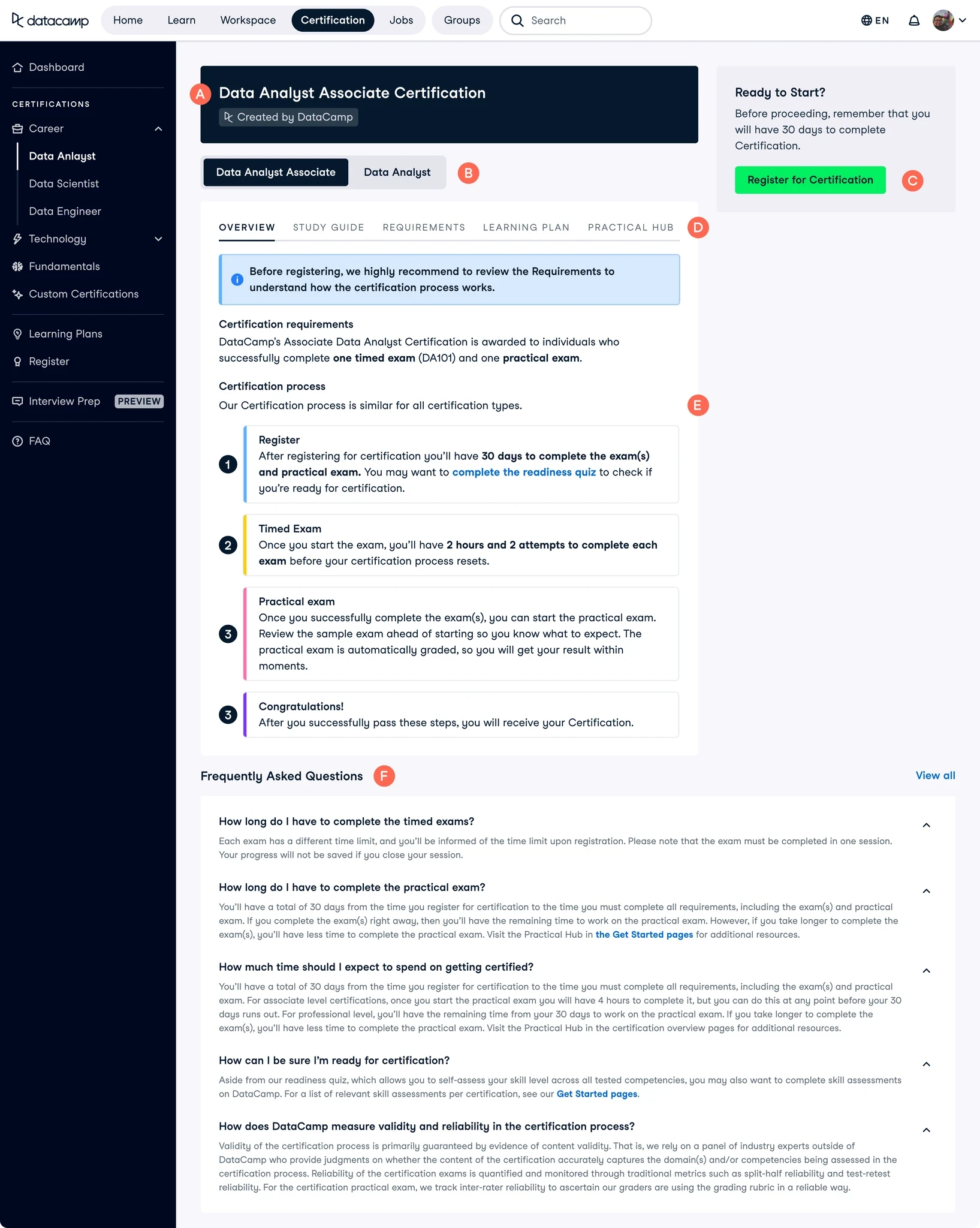 We had generally quite low registration rates for our Certifications. People weren't aware that we had them, weren't signing up to DataCamp for them, and if they did find our product, weren't registering. We found a lot of gaps in the experience from discovering our product, to taking the Certification, so we redesigned it.