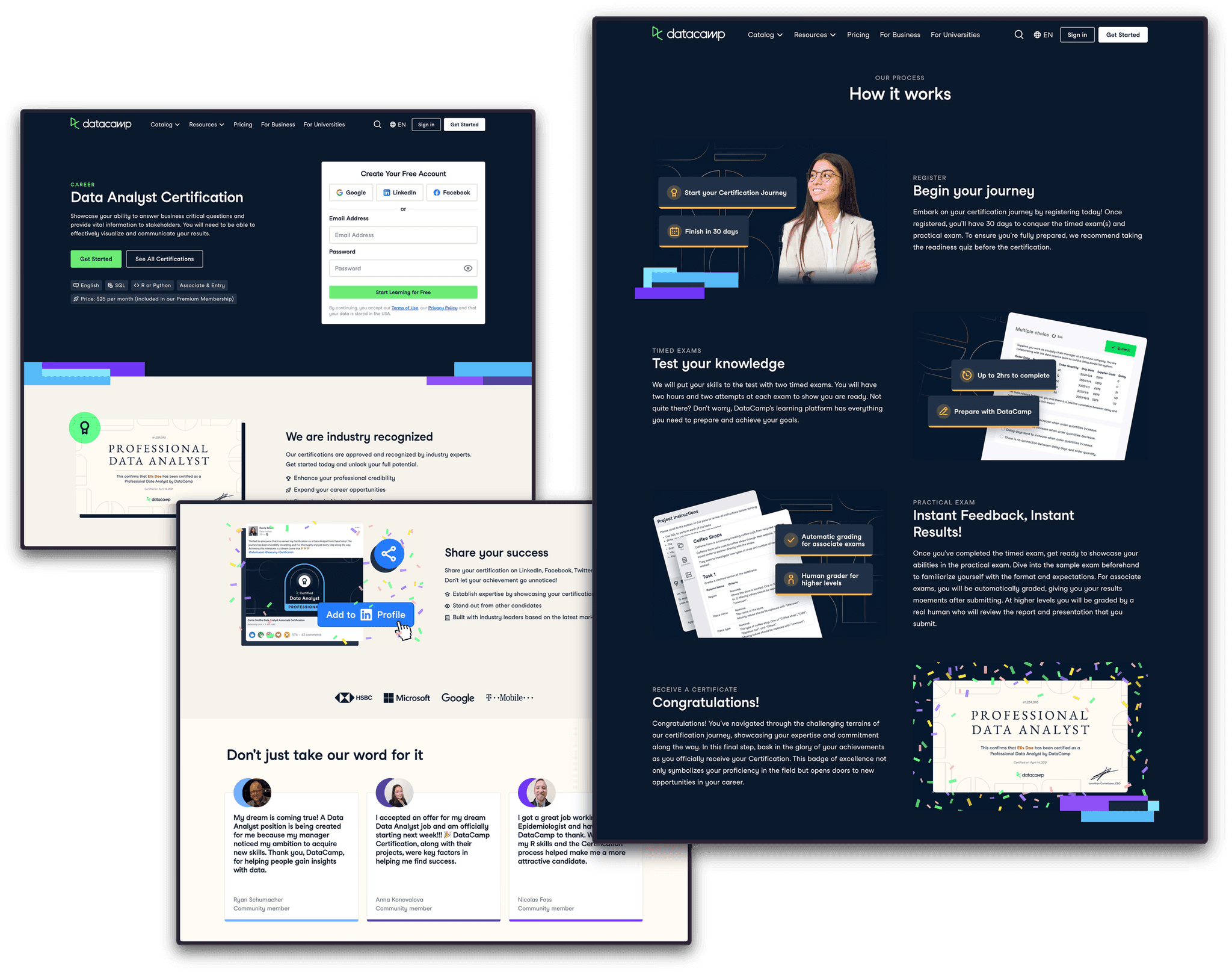 Why DataCamp? - Reassure the user that they will be learning from the best & that this is a professional, recognised Certification.